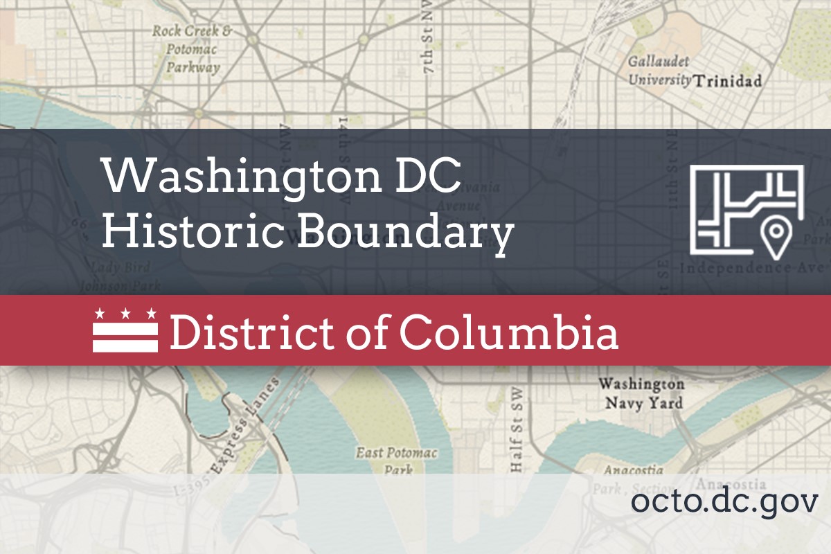 Description: District of Columbia boundary. The dataset is a polygon representing the District of Columbia boundary, created as part of the DC Geographic Information System (DC GIS) for the D.C. Office of the Chief Technology Officer (OCTO) and participating D.C. government agencies. The boundary was created by connecting all of the boundary stone locations into a single polygon. METADATA CONTENT IS IN PROCESS OF VALIDATION AND SUBJECT TO CHANGE.