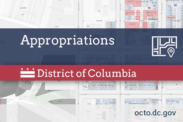 Description: Appropriation points. U.S Appropriations are lands set aside at the time of the original founding and platting of the city for use by the U.S. Federal Government. The White House, for instance, Treasury Building, Ellipse and LaFayette Park all sit on Appropriation No. 1. D.C General Hospital is on Appropriation No.13 (with the consent of the Federal Government). Appropriations are often confused with U.S Reservations but the two terms are not interchangeable. There are 17 U.S Appropriations in Washington, D.C., all of which are located within the limits of the Original City and, by definition; there can never be any more.Created as part of the DC Geographic Information System (DC GIS) for the D.C. Office of the Chief Technology Officer (OCTO) and participating D.C. government agencies. U.S Appropriations are lands set aside at the time of the original founding and platting of the city for use by the U.S. Federal Government.