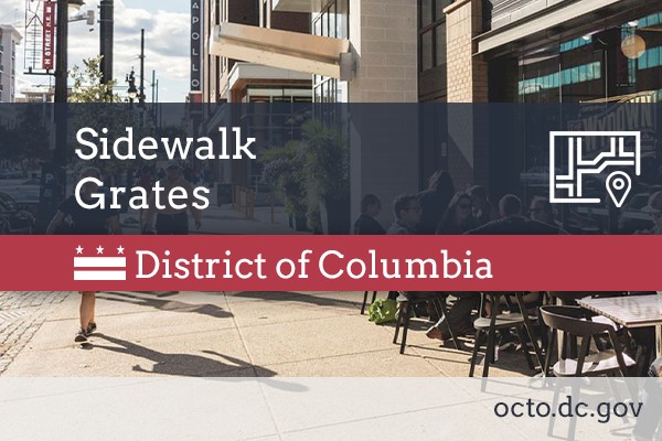Description: Grate: A single point capture for the feature at the visual center point. Grates are structures of parallel or crossed bars, used to cover steam vents or other ventilation features for buildings, and also include grates for DC Metro ventilation. They typically occur on sidewalks. Storm water inlets are not included.