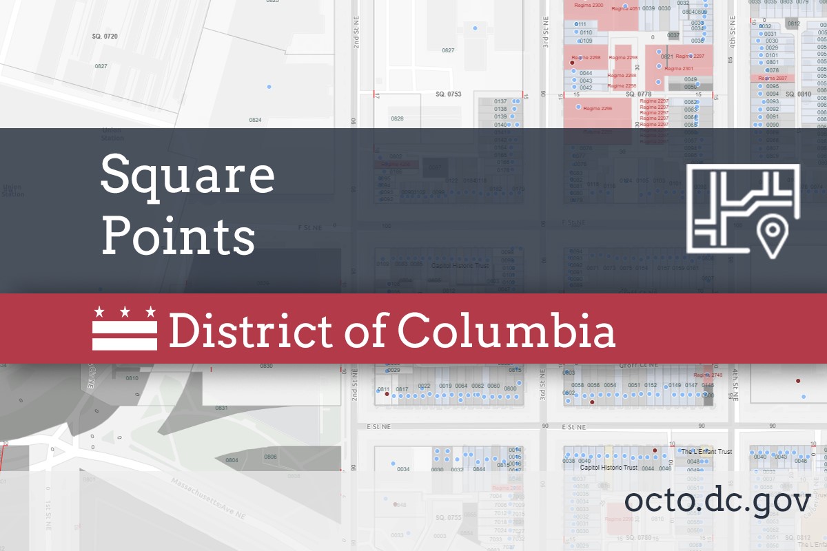 Description: Squares are calculated by the outer extents of the record or tax lots within a defined area (typically a city block). There are roughly 4896 active squares. A Square is similar to a city block. Squares were numbered starting at 1 and are currently in the 6000 series. Not all squares are active. A common cause of squares becoming inactive has been through street closing and combining squares. When the squares are combined usually the lower square number is killed and the higher square number is used for the combined square. For example if squares 1 and 2 are combined, square 1 is killed and the combination becomes square 2.Spatial locations:Each Square is an Island, alone unto itself. There is not now, and has never been, any citywide Survey Coordinate System in D.C. Most squares are unrelated to other Squares by “Measured.” They are related by Record. Street width is approximate. You cannot rely on the published official street widths to set up property lines or determine right-of-way. There is digital scan information available from DDOT regarding Right-of-Way. Some Squares are divided by streets. That is, the same Square continues on the other side of the street. Since there is no citywide Survey Coordinate System, squares were placed in their approximate location. This process is known as “best fit”.