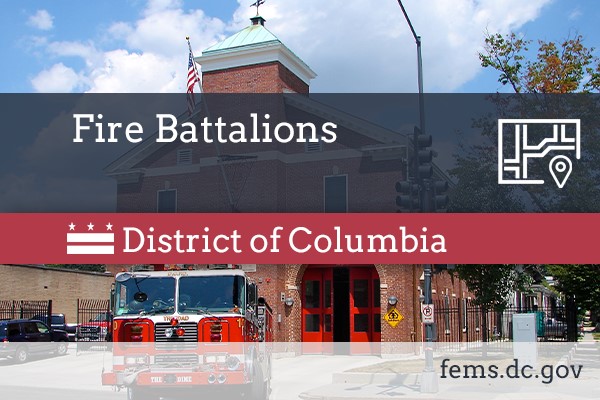 Description: FEMS Battalion Alarm Districts locations. The dataset contains locations and attributes of Battalion Alarm Districts, created as part of the DC Geographic Information System (DC GIS) for the D.C. Office of the Chief Technology Officer (OCTO) and participating D.C. government agencies. Written documentation provided by FEMS identified Engine Local Alarm Districts locations. The dataset was created using the Street Center Line dataset as reference and snap base. Battalion Alarm Districts were aggregated from Engine Local Alarm Districts