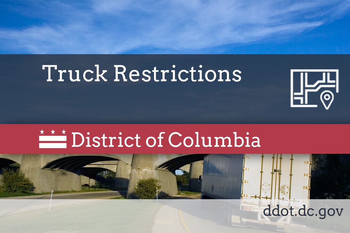 Description: A route designated as “no through-trucks over 1 and ¼ ton capacity” signifies a roadway where no person shall operate a truck over that size except for the purpose of arriving at his or her destination by the most direct route from the primary, or through, truck route at the intersection that is nearest to the destination. A route designated as “no through-trucks over two axles” signifies a roadway where no person shall operate a truck over two axles except for the purpose of arriving at his or her destination by the most direct route from the primary, or through, truck route at the intersection that is nearest to the destination. A route designated as “local deliveries allowed” signifies a roadway where trucks whether trucks are permitted on the roadway for local deliveries, otherwise no trucks are permitted on those roadways for any reason. Unless otherwise specifically posted, these restrictions do not apply to the following: School buses and school bus operationsTransportation performed by the federal or District of Columbia government, a state, or any political subdivision of a state, or an agency established under a compact between states that has been approved by the Congress of the United States; Trucks that are not otherwise classified as a commercial vehicle, as defined in 18 DCMR 9901; The transportation of human corpses or sick and injured persons; The operation of police, fire, and rescue vehicles while involved in emergency and related operations; or The operation of utility, construction, or maintenance vehicles while involved in related operations for which the District has issued permits for work.